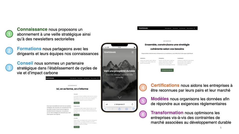 Chez temperans, nous vous proposons de répondre à vos attentes de finance durable sous l’angle le plus pertinent. Ainsi, nous avons construit une offre autour de quatre métiers principaux :